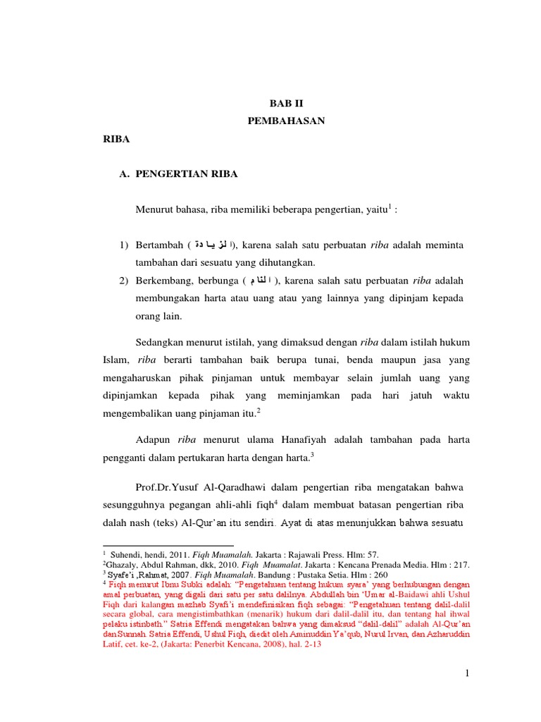 Pahami macam-macam riba ini agar lebih mudah menghindarinya. MAKALAH RIBA DAN MACAM-MACAM RIBA Makalah ini Disusun Guna Memenuhi Mata Kuliah Fiqh Muamalah Dosen Pengampu. Orang yang menyatakan riba adalah halal akan menjadi kufur dan terkeluar dari Islam kerana riba adalah salah satu dari dosa besar yang wajib dielakkan oleh seorang muslim yang disebutkan secara jelas dalam al-quran dan sunnah tentang pengharamannya.